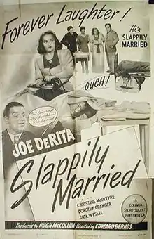 Slappily Married is an American short subject by Columbia Pictures, released on November 7, 1946. The short was directed by Edward Bernds and stars Joe DeRita, who later joined the Three Stooges and became "Curly Joe" DeRita, and features Christine McIntyre, Dorothy Granger and Dick Wessel. It is the first of four shorts in the Joe DeRita series produced by Columbia from 1946-1948; all entries were remakes of other Columbia shorts.