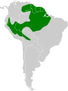 The slaty-capped shrike-vireo (Vireolanius leucotis) is a species of bird in the family Vireonidae. It is found in Bolivia, Brazil, Colombia, Ecuador, French Guiana, Guyana, Peru, Suriname, and Venezuela. Its natural habitats are subtropical or tropical moist lowland forests and subtropical or tropical moist montane forests.