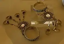 - Hand chains, an Arabic wrist bracelet joined to a ring by a chain.