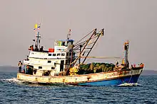Trafficking victims are often tricked by brokers' false promises of "good" factory jobs, then forced onto fishing boats where they are trapped, bought and sold like livestock, and held against their will for months or years at a time, forced to work grueling 22-hour days in dangerous conditions.[98] Those who resist or try to run away are beaten, tortured, and often killed.[99] This is commonplace because of the disposability of unfree laborers.