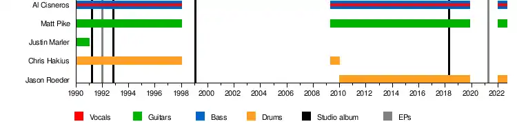 - Matt Pike – guitars (1990–1998, 2009–2019, 2022–present)