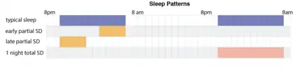 | Partial sleep deprivation (~ 4–6 hours of sleep in either the first or last half of the night) | ~ 53.1%[4] | ~ 1 Day [10] |