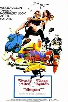 Sleeper is a 1973 American science fiction comedy film parodying a dystopic future of the United States in 2173, directed by Woody Allen and written by Allen and Marshall Brickman. The plot involves the misadventures of the owner of a health food store who is cryogenically frozen in 1973 and defrosted 200 years later in an ineptly led police state. Contemporary politics and pop culture are satirized throughout the film,[2] which includes tributes to the classic comedy of Buster Keaton, Harold Lloyd, and Charlie Chaplin.[2] Many elements of notable works of science fiction are also paid tribute to, or parodied.