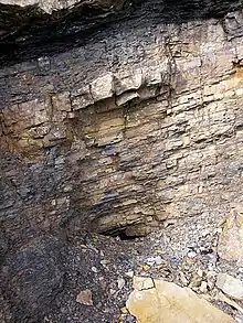 - Coal seat, with plant remains 500 metres (1,640.4 ft)