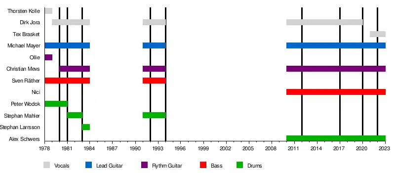 | Past members | Dirk "Diggen" Jora Peter "Ball" Wodok Sven "Eddie" Räther Ollie Stephan Mahler Stephan Larsson |