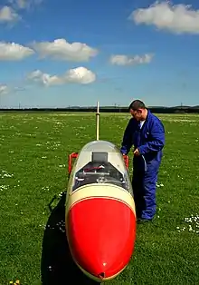 The Slingsby Skylark 4 is the final development of the Skylark series of gliders and was first manufactured in 1961 using an 18.2m span wing similar to that of the Skylark 3. About 30 Skylark 4s are still flying today (2010).[1] Slingsby had introduced double curvature fuselage panels made of glass reinforced plastic (GRP) into their previous design, the T.49 Capstan and they remodelled the front of the wooden fuselage of the Skylark 3 in this material for the Skylark 4, introducing a reclining pilot's position and smoother canopy line. Though the previous wing planform, span and area was retained, its ailerons were extended to increase the rate of roll and the outer panels used a different airfoil section, the more cambered NACA 6415, to give a better lift distribution.[2]