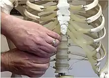 Slipping rib syndrome was first mentioned in 1919 by Edgar Ferdinand Cyriax, an orthopedic physician and physiotherapist, who described a chest pain associated with a "popping" or "clicking" sensation.[9][22] The condition was originally named after him, Cyriax syndrome, but has used multiple names since then, including clicking rib syndrome, painful rib syndrome, interchondral subluxation, and displaced ribs.[23] The name "slipping rib syndrome" was first used by surgeon Robert Davies-Colley and gained popularity, becoming the most commonly quoted term for the condition.[8] Davies-Colley was also the first to describe an operation for slipping rib syndrome, a costal cartilage removal.[3][24]