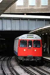 In the late 1930s, the station building was rebuilt in the modern style. Escalators were installed between the ticket hall and the platforms in early 1940, making the station the first on the sub-surface network to have escalators.[13] The new station building did not last long as it was mostly destroyed during World War II. A German bomb that fell in November 1940 killed 37 and injured 79 passengers on a train[14] in the station and destroyed the ticket hall, escalators and the glazed roof over the tracks.