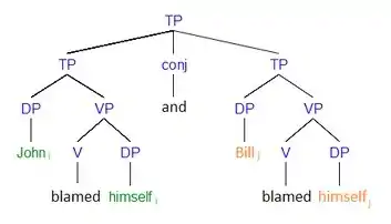 3.ii) Johni [VP blamed himselfi], and Billj [VP blamed himselfj]