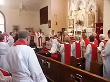 The Slovak Zion Synod is a group of 21 Lutheran congregations and one of the 65 synods that make up the Evangelical Lutheran Church in America. It is the only non-geographic synod in the ELCA, the only ELCA synod to have a congregation in Canada, and the only synod defined by its mission and outreach, instead of geography.[2][3] The synod was founded by Slovak immigrants in 1919 as the Slovak Evangelical Lutheran Zion Synod and joined with the United Lutheran Church in America, remaining as a separate synod in that denomination.[4] The policy continued when the ULCA merged into the Lutheran Church in America (1962) and later the ELCA (1988).