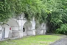 In 1886, the Fort VIIA "Służewiec" had been build in the village, as part of the series of fortifications of the Warsaw Fortress, build around Warsaw by the Imperial Russian Army. The objective of the fort had been the protection of road leading to town of Puławy, now being the Puławska Streen. In 1909, it was decided to decommission and demolish the fortifications of the Warsaw Fortress, due to the high costs of their maintenance, and as such the Fort VIIA had been partially demolished in 1913.[40] The building is currently located within the modern borders of Służew, within a neighbourhood of Służew Fort.[41]