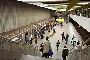 Smíchovské nádraží (Czech pronunciation: [ˈsmiːxofskɛː ˈnaːdraʒiː]) is a Prague Metro station on Line B. It serves the Smíchov railway station. The station was opened on 2 November 1985, as the southern terminus of the inaugural section of Line B between Sokolovská and Smíchovské nádraží. On 26 October 1988, Line B was extended further to Nové Butovice.[2]
