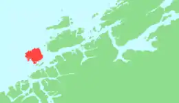 Smøla is the 19th largest island in Norway.[1] The island is located in Smøla Municipality in Møre og Romsdal county; the vast majority of the municipality is the island. The island has a good road network across the island that connects it to many of the small surrounding islands, however, it does not have any outside road connections to the rest of Norway. The only regular ferry service is via the small island of Edøya to the south of Smøla, which one can drive to from Smøla.[2]