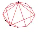 A small-world network is a mathematical graph in which most nodes are not neighbors of one another, but the neighbors of any given node are likely to be neighbors of each other. Due to this, most neighboring nodes can be reached from every other node by a small number of hops or steps.[1] Specifically, a small-world network is defined to be a network where the typical distance L between two randomly chosen nodes (the number of steps required) grows proportionally to the logarithm of the number of nodes N in the network, that is:[2]