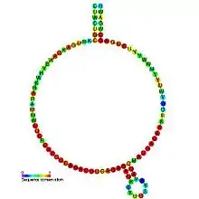 ![]() Predicted secondary structure and sequence conservation of snoR64 | |