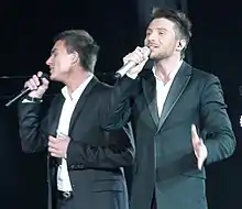 After the official disbandment of the group in 2006, Topalov and Lazarev did not communicate for a long time. One of their first appearances together again was in 2011, when Lazerev invited Topalov to sing a duet at one of his concerts in Moscow. In 2017, Topalov told in a broadcast of Secret for a million that he did not consider Lazarev a close friend and that they only rarely talked.[8] However, in a broadcast of the same show in 2019, Lazаrev and Topalov revealed that they had grown a close bond since and that the birth of their sons had brought them together again.[9]