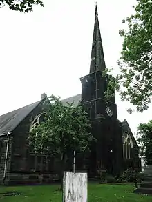 The oldest surviving building in Smethwick is the Old Church[14] which stands on the corner of Church Road and the Uplands. This was consecrated in 1732 as a Chapel of Ease in the parish of St Peter, Harborne. The building was originally known as "Parkes' Chapel" in honour of Mistress Dorothy Parkes who bequeathed the money for the church and also for a local school. The chapel was later known as the "Old Chapel", and the public house next to it is still called this. In the church there are several fine memorials, including one to Dorothy Parkes.