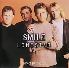 "Smile" is a song written by Keith Follesé and Chris Lindsey, and recorded by American country music band Lonestar. It was released in October 1999 as the third single and 10th track from their third album Lonely Grill.[1] The song reached the top of the Billboard Hot Country Singles & Tracks chart.