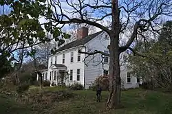 The Smith House stands in a rural-residential area of eastern Ipswich, on the north side of Argilla Road, roughly midway between Northgate Road and Fox Creek Road. It is oriented facing nearly south (the road runs east-northeast), and is screened from the road by mature plantings. It is a 2+1⁄2-story colonial style house with five window bays and a center chimney. It features an integral leanto section at its rear (rather than being a later addition). A number of the critical framing members of its construction are still exposed, showing workmanship that is typical of the First Period, but there are also typical Georgian period features, such as a plastered ceiling and wood paneling, and the stairway to the second floor is Georgian in character. The main entrance is sheltered by a small gabled Greek Revival porch.[2]
