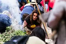 Smoking ceremony is an ancient and contemporary custom among some Aboriginal Australians that involves smouldering native plants to produce smoke. This herbal smoke is believed to have both spiritual and physical cleansing properties, as well as the ability to ward off bad spirits.[1] In traditional, spiritual culture, smoking ceremonies have been performed following either childbirth or initiation rites involving circumcision.[2][3] In contemporary culture, elements of smoking ceremonies have been incorporated into Welcome to Country performances and other spiritual events held for the general public.