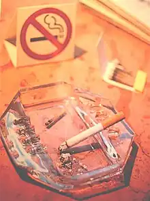 Smoking in Albania is prevalent as about 40% of Albanians smoke regularly.[1] In Europe, only Turkey has a higher smoking rate than Albania.[1] Albanians annually spend more than €300 million on tobacco products.[2] Zog I of Albania was reported to smoke 200 cigarettes a day.[3] Albania adopted tough anti-smoking laws in 2007, but they are not strictly enforced.[2] Smoking prevalence is increasing, especially among females ages 13 to 15.[4] The smoking rate for teens between the ages of 13 and 15 is currently 15%.[2]