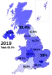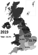 Smoking prevalence varies with geography. In self-reported Annual Population Survey data, the local authorities of Kingston upon Hull and Blackpool had consistently high smoking prevalence rates of 22.2% and 23.4% respectively in 2019, while Ribble Valley and Rushcliffe had rates of 5.1% and 5.9%.[6] It is estimated that in some of the most deprived communities in Scotland, smoking rates may be as high as 47%. An estimated 40% of adults smoke in the constituency of Glasgow East, one of the most deprived seats in the entire United Kingdom.