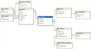 The example schema shown to the right is a snowflaked version of the star schema example provided in the star schema article.