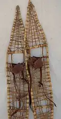 ![]() Classic wooden-framed, rawhide-latticed snowshoe (metal frame components and coarse weave) |
