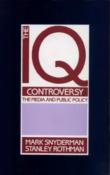 The IQ Controversy, the Media and Public Policy is a book published by Smith College professor emeritus Stanley Rothman and Harvard researcher Mark Snyderman in 1988. Claiming to document liberal bias in media coverage of scientific findings regarding intelligence quotient (IQ), the book builds on a survey of the opinions of hundreds of North American psychologists, sociologists and educationalists conducted by the authors in 1984. The book also includes an analysis of the reporting on intelligence testing by the press and television in the US for the period 1969–1983, as well as an opinion poll of 207 journalists and 86 science editors about IQ testing.