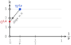 We can see that as tends to infinity, approaches . Thus, if the dimension of the space on which is defined is large, the improvement in the local behavior of from having a derivative in is small ( is only slightly larger than ). In particular, for functions on an infinite-dimensional space, we cannot expect any direct analog of the classical Sobolev embedding theorems.