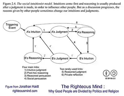 - Haidt, Jonathan (2001). "The emotional dog and its rational tail: A social intuitionist approach to moral judgment". Psychological Review. 108 (4): 814–834. doi:10.1037/0033-295X.108.4.814. PMID 11699120.