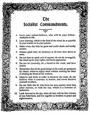 In 1894, another Socialist Sunday School was created by trade unionist Tom Anderson.[3] By 1912 there were over 200 Socialist Sunday Schools throughout Britain. In their early days they encountered opposition from local authorities and politicians, who argued that Socialist Sunday Schools subverted the minds of young people with political and anti-religious doctrines and teachings.