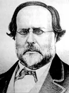The creation of the Parthenon Litterario had the collaboration of approximately twenty founding members,[3] but was centered on two figures: the physician and writer José Antônio do Vale Caldre e Fião and the young Apolinário José Gomes Porto-Alegre. Caldre e Fião, besides mentoring the new group and constantly supporting the initiative, lent his personal prestige, since he was a well-known author, being elected honorary president. Apolinário was fundamental for his dynamism and posture, and was the undisputed leader of the society.[4] According to Luciana Boeira, his activity was so dominant that "it is practically impossible to think about the institution without thinking about the action that Apolinário exercised for its maintenance."[5] In the meetings that preceded the foundation, a provisional board was formed, composed of Vasco de Araújo e Silva (president), Antônio Ferreira Neves and Aurélio Veríssimo de Bittencourt (secretaries); Caldre e Fião, José Bernardino dos Santos, Manuel Pereira da Silva Ubatuba and Hilário Ribeiro de Andrade e Silva (statutes).[4] The first effective president was Firmino Antônio de Araújo.[6]