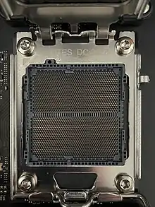 Socket AM5 (LGA 1718) is a zero insertion force flip-chip land grid array (LGA)[1] CPU socket designed by Advanced Micro Devices, that is used for AMD Ryzen microprocessors starting with the Zen 4 microarchitecture.[2][3] AM5 replaces the Socket AM4 and is AMD's first LGA socket designed for mainstream, non-enthusiast CPUs.