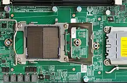 Socket C32 is a zero insertion force land grid array CPU socket designed by AMD for their single-CPU and dual-CPU Opteron 4000 series server CPUs. It is the successor to Socket AM3 for single-CPU servers and the successor for Socket F for lower-end dual-CPU servers (High-end dual-CPU servers will use Socket G34). Socket C32 supports two DDR3 SDRAM channels. It is based on the Socket F and uses a similar 1207-pin LGA socket but is not physically or electrically compatible with Socket F due to the use of DDR3 SDRAM instead of the DDR2 SDRAM that Socket F platforms use.