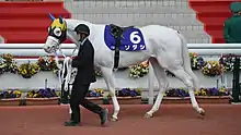 On 10 December Sodashi was moved up to the highest class to contest the Grade 1 Hanshin Juvenile Fillies over 1600 metres at Hanshin Racecourse and went off the 2.2/1 favourite against seventeen opponents including Satono Reinas (Saffron Sho), Meikei Yell (Kokura Nisai Stakes, Fantasy Stakes), Infinite (second in the Saudi Arabia Royal Cup), and Uberleben. In the build up to the race, Hayato Yoshida said "[White horses] are all very sensitive and high maintenance. You do need to be careful with them but with her, that sensitive side is bringing out the best in her. She breaks well and is super responsive when you tell her to go. She’s really smart and a very complete racehorse."[11] The filly settled in fourth place on the inside as the outsider Yoka Yoka set the early pace. After looking to be unlikely to obtain a clear run in the straight, she went to the front inside the last 200 metres and held off the late challenges of Satono Reinas and Uberleben to win by a nose and a neck, becoming the first white Japanese horse to win a graded turf race.[12] Yoshida commented "Going into the race as favorite was a bit of a load, but I'm thrilled with the outcome. She hated to even go near the gate but I'm relieved that all went well and that we were able to be positioned just as I hoped. The going affected her good turn of foot but she gave all she had. There is room for improvement, and I hope we can get her ready for next year's classics."[13]