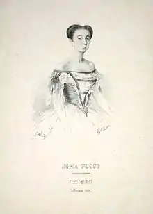 Sofia Fuoco (16 January 1830, Milan, the Kingdom of Lombardy–Venetia — 16 June 1916, Carate Urio, the Province of Como) — Italian ballerina. Was born as Maria Brambilla; her stage name, Fuoco (the mother's family name, given because there was more than one "Maria Brambilla" at the dance school)[1][2] means ″Fire″ in Italian.