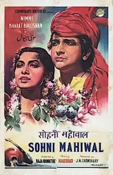 Sohni Mahiwal is a 1958 Indian Hindi-language historical romance film directed by Raja Nawathe and produced by J. N. Choudhary. The film stars Bharat Bhushan, Nimmi and Om Prakash in lead roles. The film's music is composed by Naushad. It is based on the tragic romance of Sohni Mahiwal.[1]