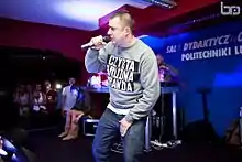 Sokół (Polish pronunciation: [ˈsɔkuw]), stage name of Wojciech Sosnowski (IPA: [ˈvɔjt͡ɕɛx sɔsˈnɔfskʲi]; born March 11, 1977), is a Polish MC born in Warsaw, Poland 11 March 1977. Since his debut show and the first track on the DJ 600V album in 1997, Sokół has released 13 studio albums with various music projects, such as ZIP Skład (1999),[1] WWO (in the years 2000–2005, one of them went double platinum, and two others sold gold),[2] Sokół i Marysia Starosta (both platinum - 2011, 2013),[3][4] Sokół feat. Pono (2007–2009, two gold).[2]