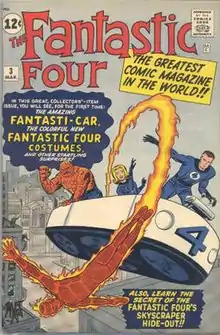 A fictionalized Brodsky is among the beachgoers gathered 'round the unconscious Namor in penciler Marie Severin's splash page for The Sub-Mariner #19 (Nov. 1969). As an in-joke, Severin had drawn the Marvel staff (as well as three personal friends) as onlookers. Brodsky is the man in the Hawaiian shirt at lower right, gesturing to the police (and standing in front of a cigar-smoking Mike Esposito).[16] A fictionalized Brodsky also appeared alongside Lee, Kirby and Steinberg — all transformed into a Marvel Bullpen version of the Fantastic Four — in the alternate-reality comic What If Vol. 1, #11 (Oct. 1978). Written and drawn by Kirby, the odd tale featured Brodsky as the Human Torch.