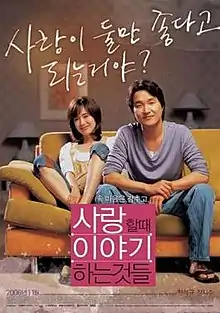 Solace (Korean: 사랑할 때 이야기하는 것들; RR: Salanghal ddae iyagihaneun geotdeul; (lit. "Things You Say When You're in Love") is a 2006 South Korean film, and the directorial debut of Byeon Seung-wook. It stars Han Suk-kyu as a pharmacist who cares for his mentally disabled brother, and the relationship he builds with a debt-saddled woman (played by Kim Ji-soo) who sells fake designer clothes.[2]