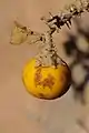 Common names include thorn apple, bitter apple,[1] bitterball [4] and bitter tomato [5][6] It may be confused with the similar S. linnaeanum where their ranges overlap in Africa. In ancient India, Solanum incanum was domesticated into the eggplant, Solanum melongena.[7][8][9] In biblical literature, it is sometimes used as a "hedge of thorns" (Hebrew: מְשֻׂכַת חָדֶק).[10]