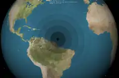 A total solar eclipse will occur on July 16, 2186, which will be the longest total eclipse for thousands of years. The eclipse will pass over the southern Galápagos Islands (with a total eclipse of 4 minutes occurring over the southern tip of Española Island), the northern tip of Ecuador (with a total eclipse of 3 minutes and 26 seconds on Isla Santa Rosa), central Colombia (4 minutes and 50 seconds over Bogota), central Venezuela, and northern Guyana (7 minutes and 4 seconds just north of Anna Regina).[1]