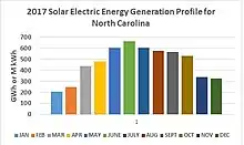 Using data available from the U.S. Energy Information Agency's Electric Power Annual 2017[55] and "Electric Power Monthly Data Browser",[56][57][58][59] the following table summarizes North Carolina's solar energy posture.