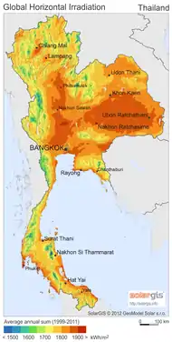 - "Global Horizontal Irradiation (GHI): Thailand". solargis. Retrieved 5 Mar 2015.