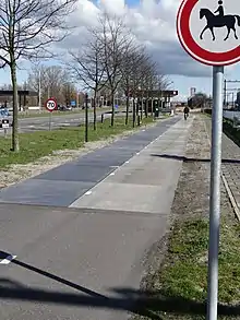 In April 2017 the first heated solar cycle path was installed in the Bovenbuurtweg in Ede. The panels would stay free of snow and ice during the winter.[21] In February 2020 the solar panels were replaced with panels with a different surface coating to make the cycle path less slippery.[22]