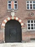 Its front on Sortedam Doseringen has a balcony above the central main gateway. Decorations include 12 terracotta medallions surrounded by laurel wreaths. They were created by the sculptor Carl Aarsleff and represent the virtues which the residents were originally expected to possess. Temperance, diligence, patience, innocence, humility and faith are seen on the left while hope, charity, peace, vigilance, prudence and truth are seen on the right.[1]