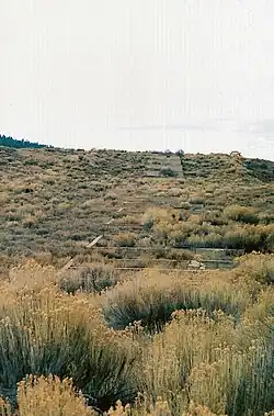 In 1919, a real estate promoter named H.C. Mears surveyed a townsite at Soldier Summit and began to sell building lots. The town was incorporated in 1921. There were stores, hotels, saloons, restaurants, two churches, and a school.[1] Growth was driven by the D&RGW moving some of its machine shops, used for servicing helper engines, to Soldier Summit from Helper. The Church of Jesus Christ of Latter-day Saints organized a branch in the new town on June 21, 1921, with Parley Bills as branch president. The number of Mormons in the town was large enough in June 1927 to organize a ward with Walter S. Groesbeck as bishop. The population of Soldier Summit peaked at 2,500 in the 1920s, but began to decline as the railroad decided to move its operations back to Helper due to the severe winters and high cost of doing business at the summit. The introduction of diesel locomotives, and the realignment of the tracks through Tucker and Gilluly which reduced the grade from 4% to 2%,[2] eliminated the need to place helper engines at the site, and further hurt the town's fortunes. The railroad moved many employees' homes to Helper, leaving only the foundations. By January 1930, the ward was reduced to a branch.[3]
