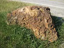 Serpentine is valued as a decorative building stone, road material, and for this area in Maryland, a historic source of chromium ore. Isaac Tyson, a 19th-century businessman from Baltimore, was one of the first to make the connection between the occurrence of chromite and serpentine barrens. He began mining chromite here in 1827. During the 19th century, Soldiers Delight and the Bare Hills district of Baltimore County were the largest producers of chrome in the world. In Maryland, chromite, a significant accessory mineral in the serpentine, was mined until 1860. Several old mines and quarries are still visible in these serpentine barrens.[1]