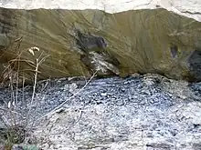 Sole marks are sedimentary structures found on the bases of certain strata, that indicate small-scale (usually on the order of centimetres) grooves or irregularities.[1][2] This usually occurs at the interface of two differing lithologies and/or grain sizes. They are commonly preserved as casts of these indents on the bottom of the overlying bed (like flute casts). This is similar to casts and molds in fossil preservation. Occurring as they do only at the bottom of beds, and their distinctive shapes, they can make useful way up structures and paleocurrent indicators.[3]